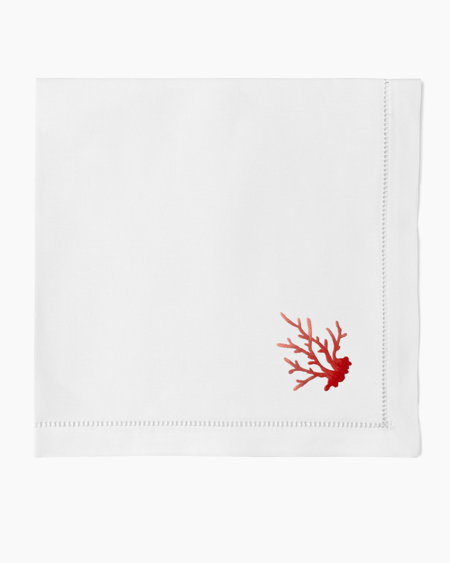 Hand embroidered dinner napkin on 100% cotton, finished by hand with a classic hemstitch.