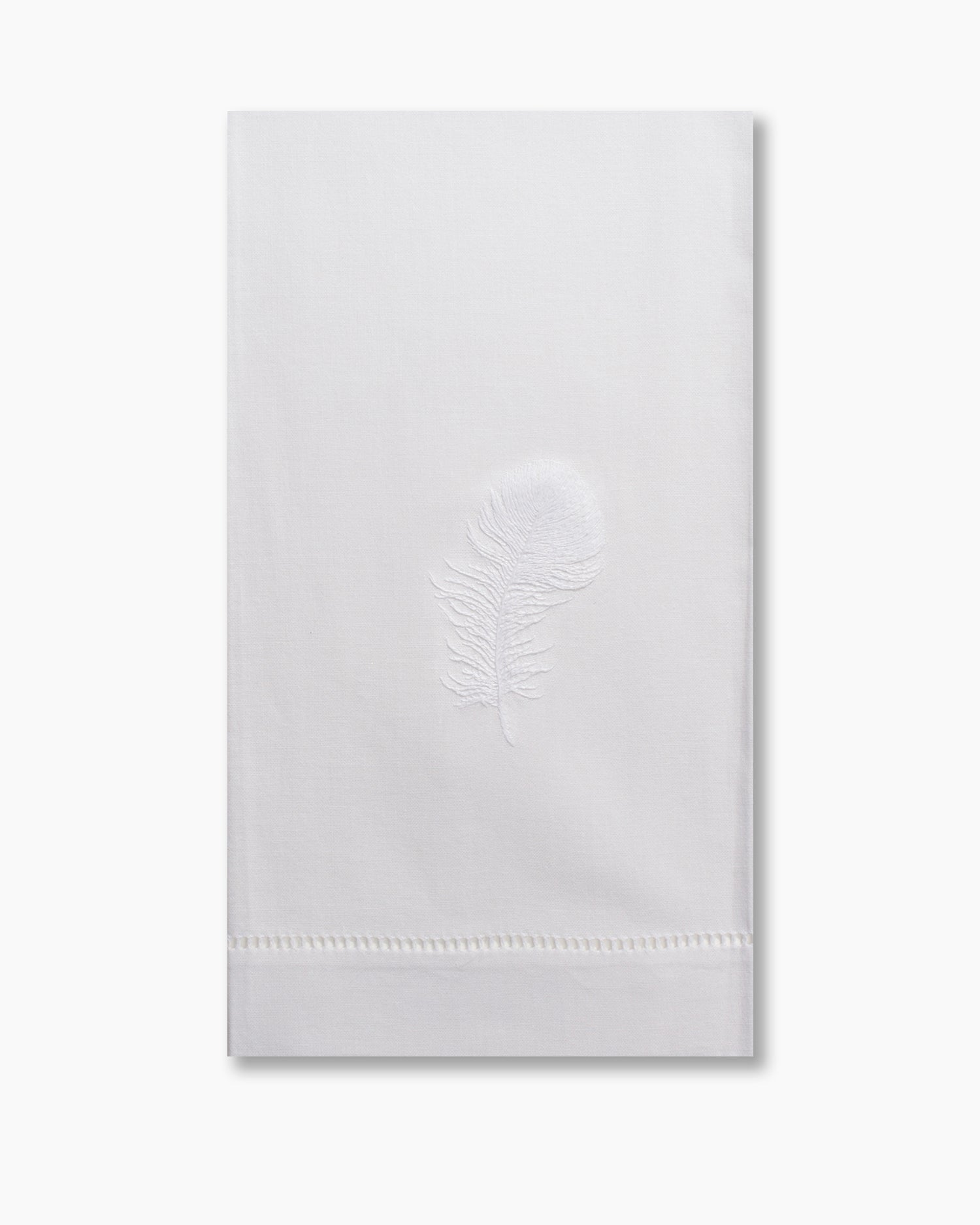 Indulge in luxury with our Feather White Hand Towel. Delicately hand-embroidered on soft cotton, this towel adds a touch of refinement to any home.