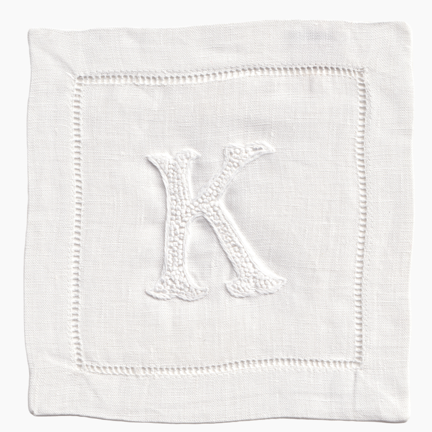 Nouveau Monogram Cocktail Napkins White K - (Set of 4)