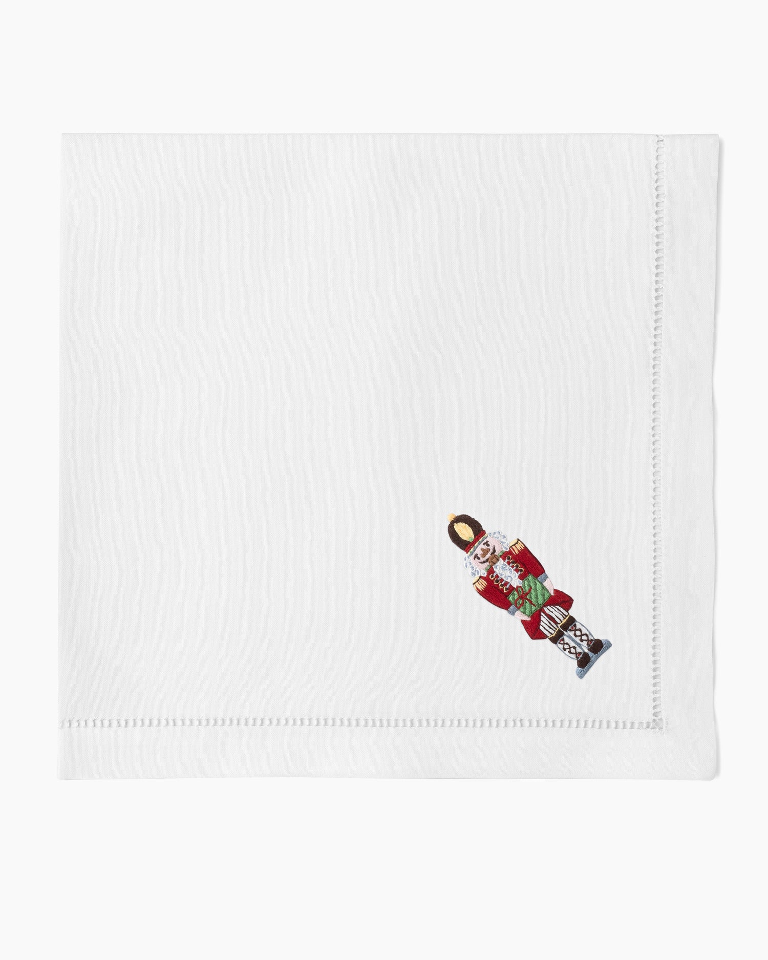 Hand embroidered dinner napkin on 100% cotton, finished by hand with a classic hemstitch.