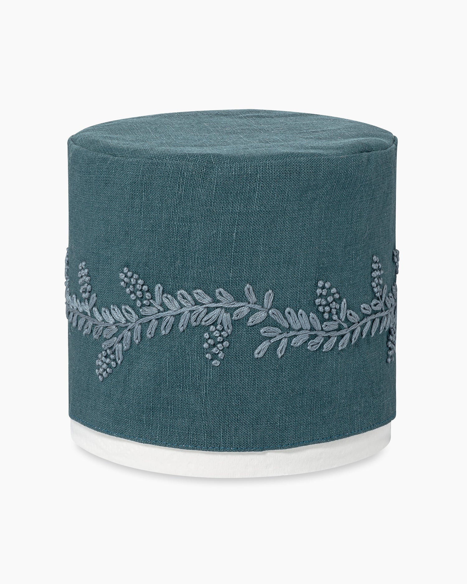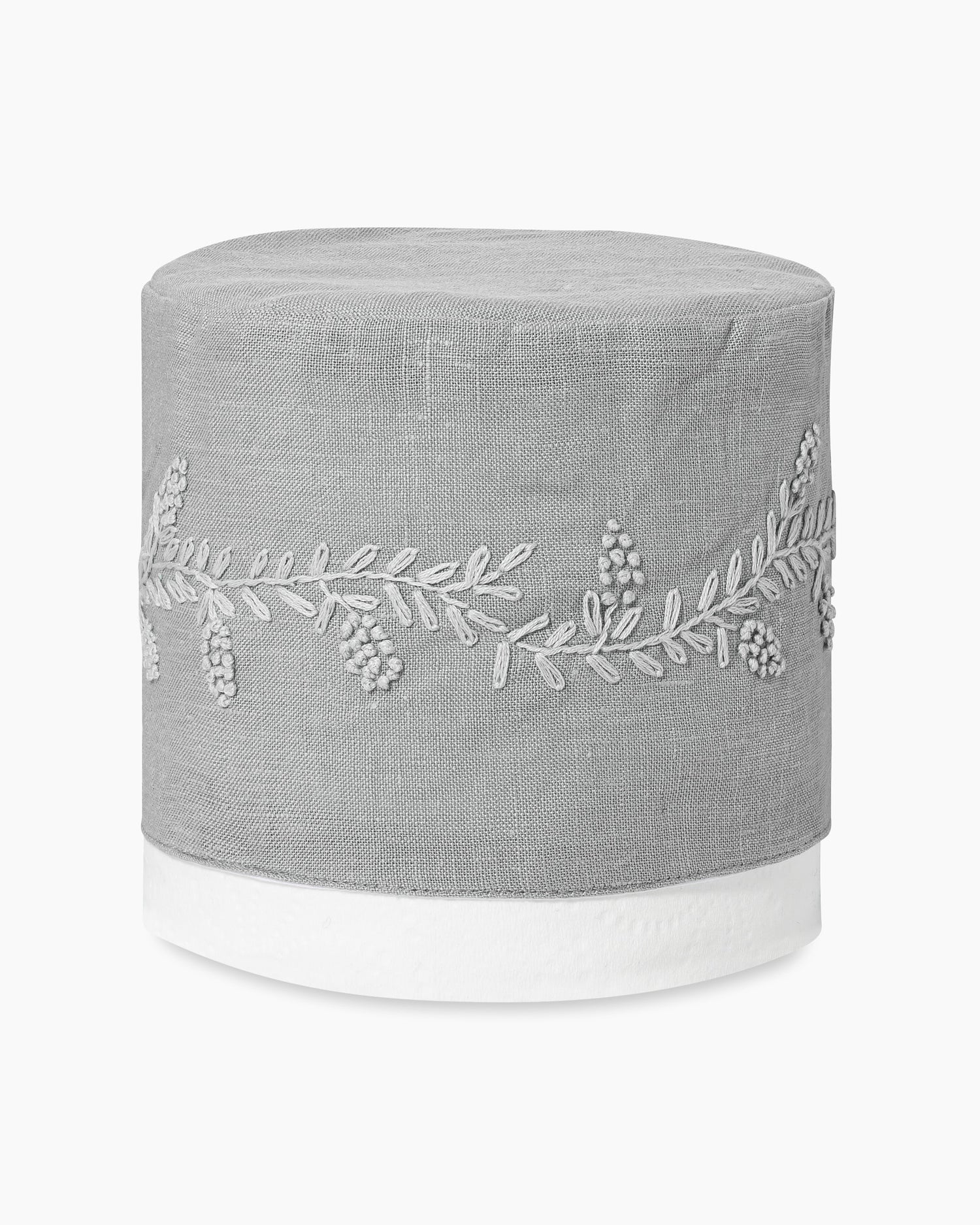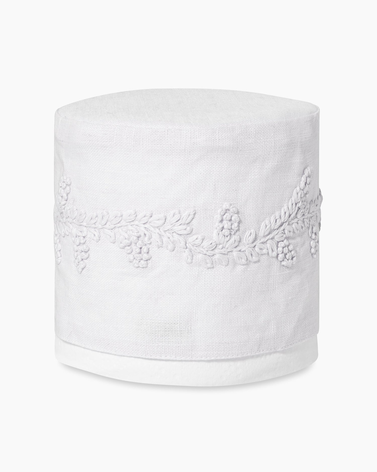 Pure linen finished with a clean and classic mitered hem and embroidered in the full round.