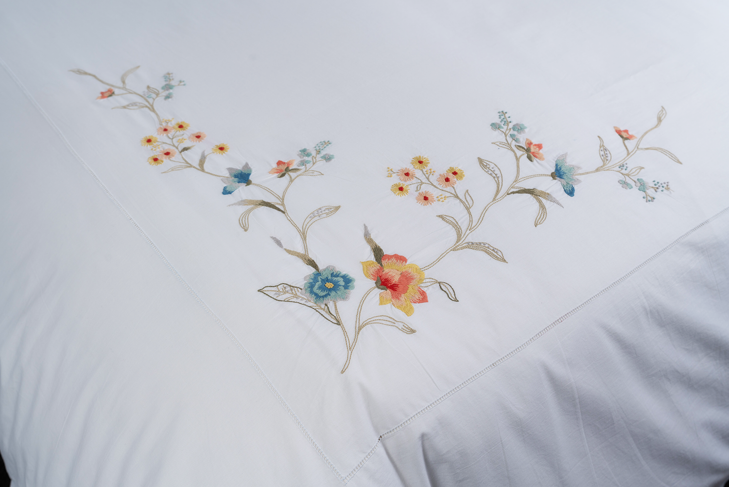 Rich and vivid, Eden is a tribute to the timeless floral. Featuring bold embroidery in traditional tones, this beautifully crafted collection blooms on white percale with a refined, hemstitched border. Crafted with both precision and soul. ...