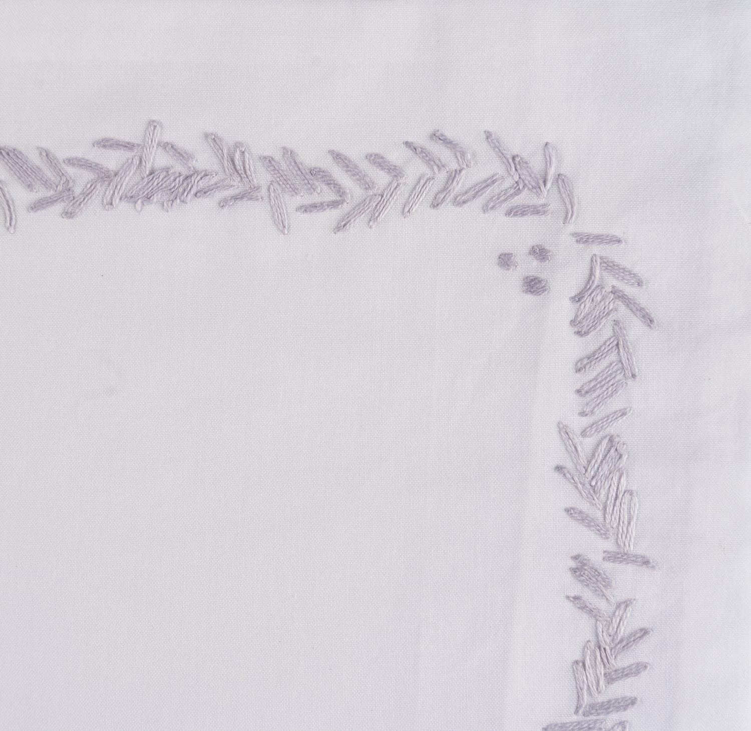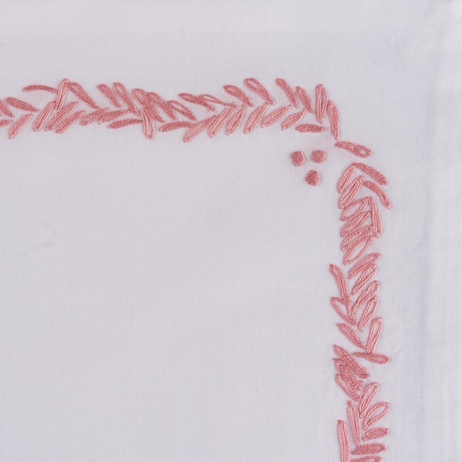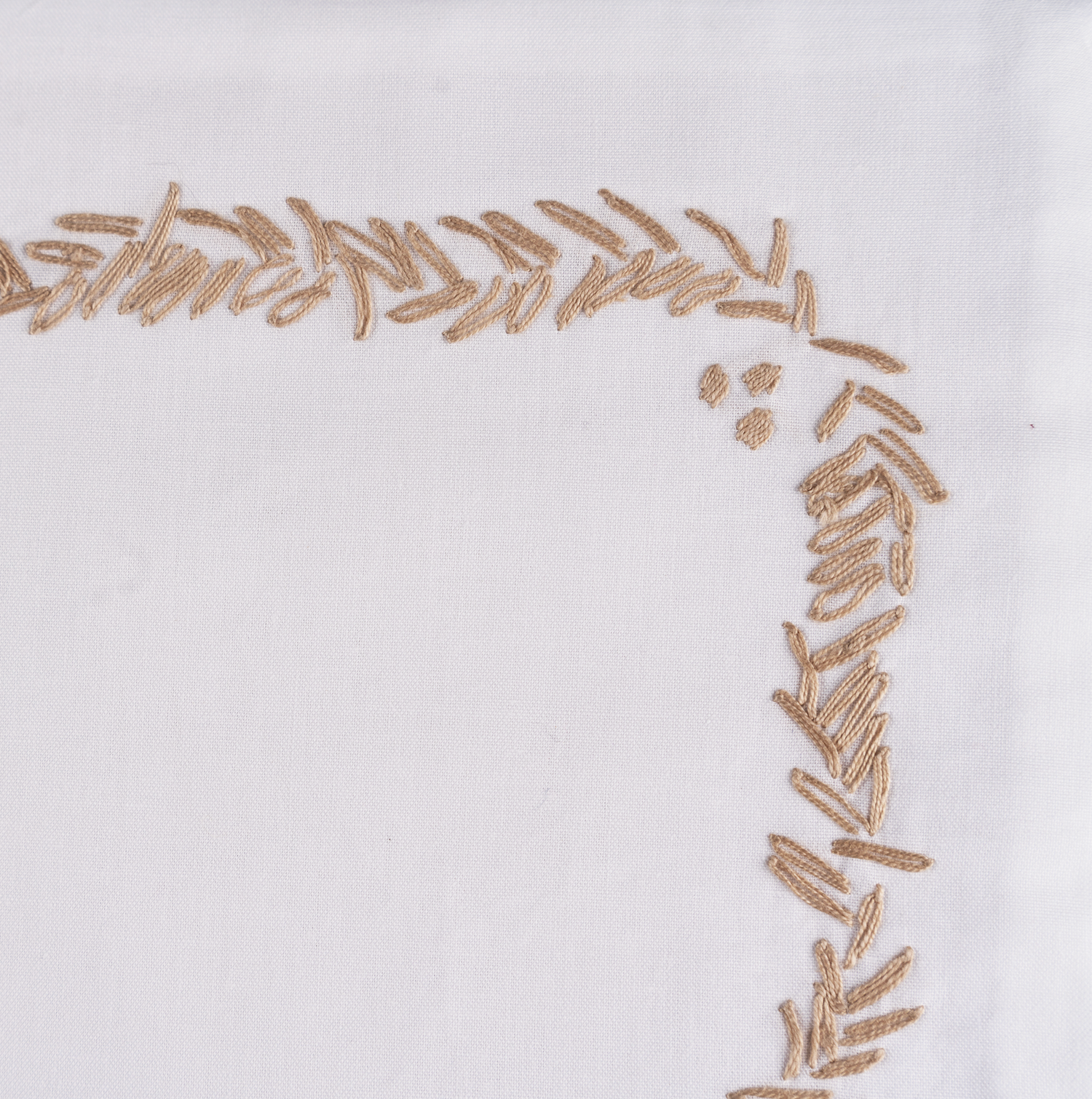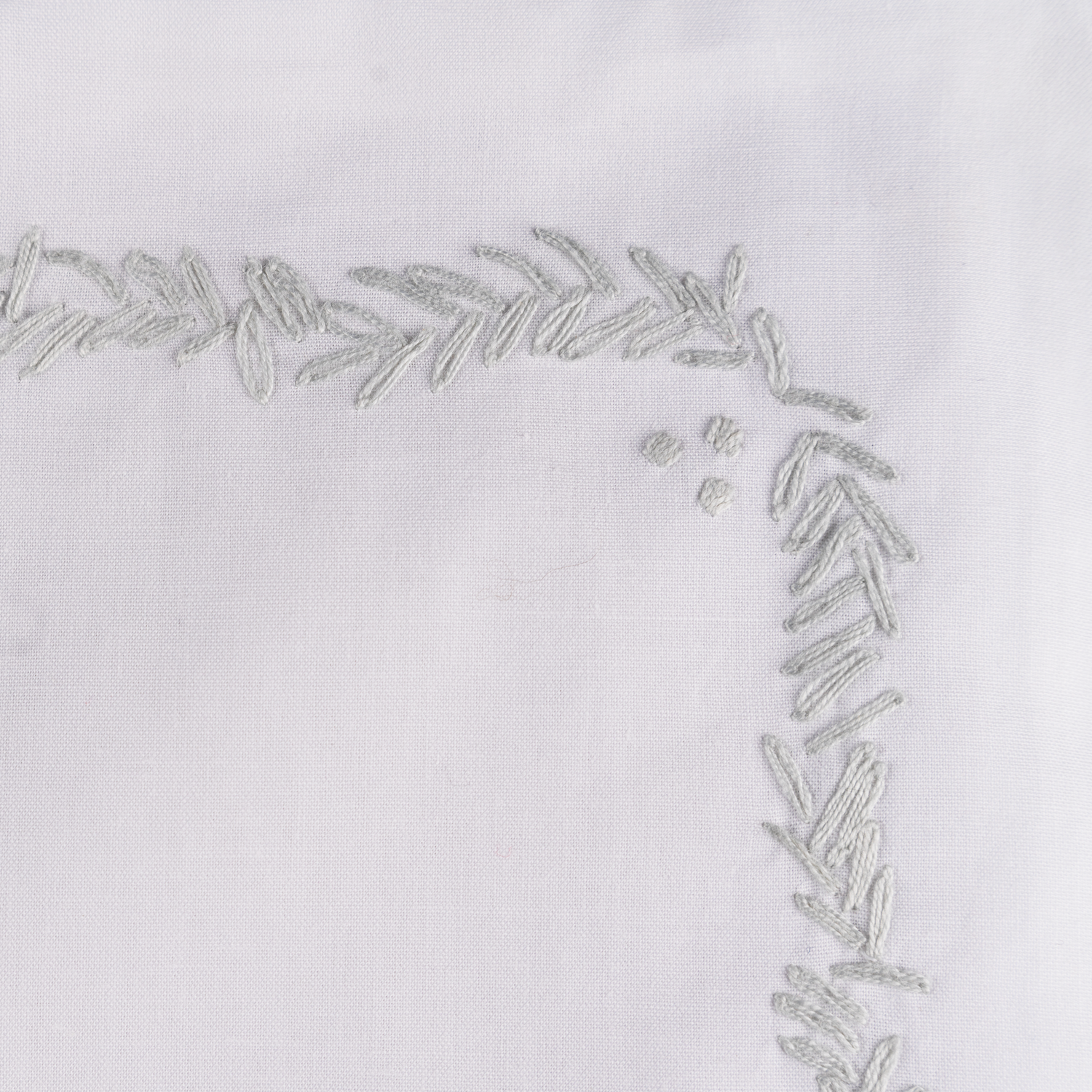 With its gently curved leaves and minimalist embroidered line, Foglia is a study in subtle sophistication. On a foundation of crisp, 200-thread-count Italian percale, skilled artisans in northern Vietnam hand-embroider each border in fine DMC thread, resulting in a design that feels graceful yet grounded.