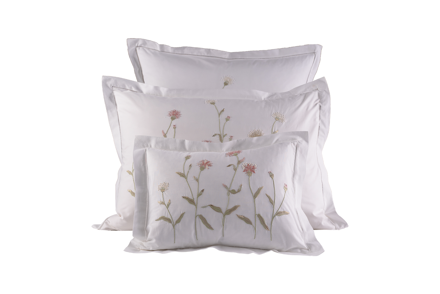 Inspired by fields in bloom, Wildflowers invites you to rest amid an embroidered meadow. Each stem, petal, and seed head is brought to life in soft, pretty tones on pure white percale. Finished with traditional detail and hand touches, it’s an invitation to daydream.....