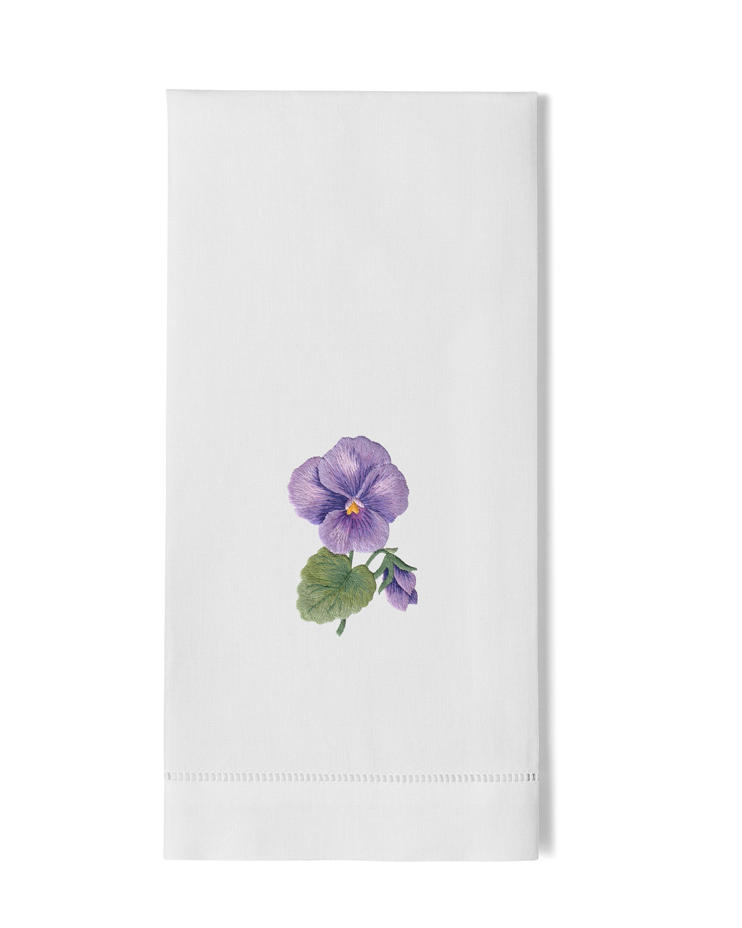 Entirely hand-embroidered on 100% cotton, and finished with our fully hand-drawn hemstitch—crisp, considered, and unmistakably handmade.